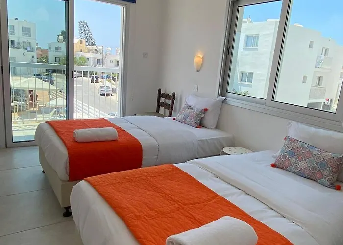 Den här lägenheten ligger precis runt hörnet från Klostret i Agia Napa. Gästerna kan besöka Konnos strand cirka 7 km bort. Närliggande attraktioner inkluderar Thalassa Sjöfartsmuseum, ett stenkast från boendet.